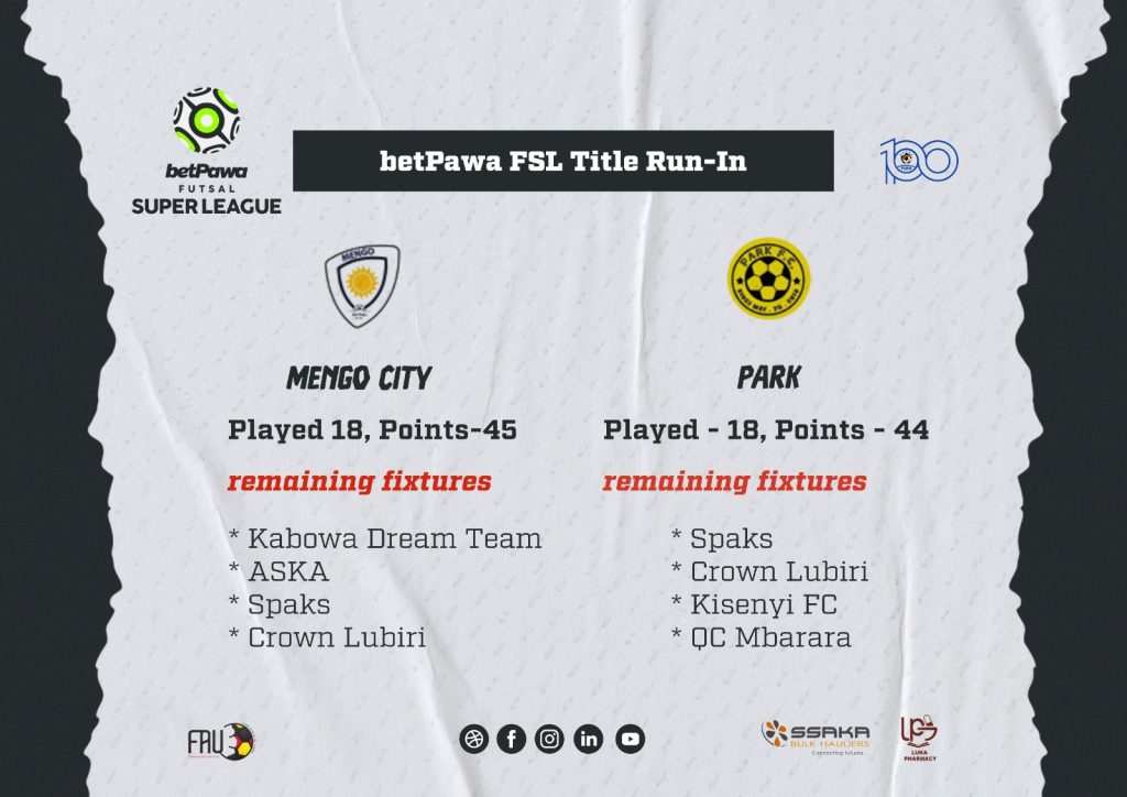 The race for the 2025 betPawa Futsal Super League (FSL) title is reaching boiling point, with a thrilling two-horse sprint to the finish. League leaders Mengo City sit on 45 points after 18 games, clinging to the slimmest of leads over defending champions Park FC, who are just one point behind.